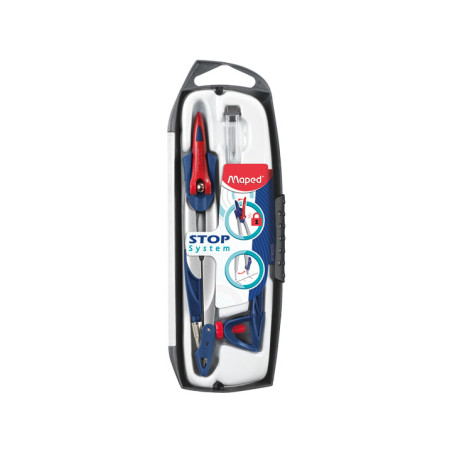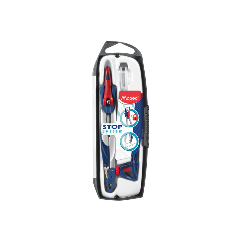 - Compás metálico de precisión - Con husillo y ajuste por rueda central - Diámetro máximo del círculo: 225 mm. - Estuche de plástico individual con tapa transparente - Incluye: compás y tubo de minas - Diseño en bicolor pastel