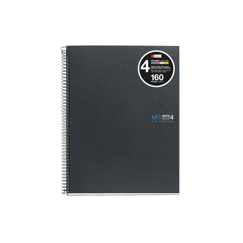 - Cuaderno de espiral - Cubierta en polipropileno impreso translúcido - Incluye adhesivo explicativo removible - Papel extra opaco de 90 g - 120 hojas microperforadas con 4 taladros - Cuadrícula de 5 mm - Formato: A4