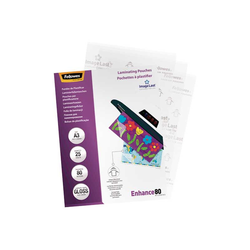 Fundas para plastificar de 80 micras de alta calidad, diseñadas para proteger y realzar tus documentos. Las flechas indican la forma correcta de introducción de la funda, desaparecen completamente tras la plastificación. Ideales para plastificar notas informativas, fotografías, materiales didácticos y documentos manipulados con frecuencia. Acabado en brillo para formato A3. Compatible con todas las plastificadoras del mercado.