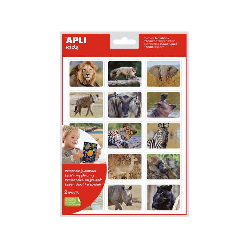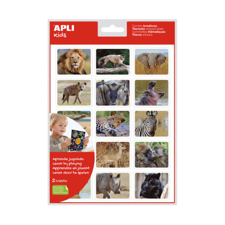 - Gomets temáticos - Fotografías reales - Imágenes reales diseñados para aprender jugando - Descubre los animales de la sabana con estos divertidos y educativos gomets. - 144 gomets removibles