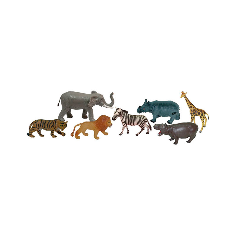 Amplia selección de animales fabricados en plástico muy resistente y de alta calidad que reproducen distintas especies. Motiva el interés y el aprendizaje del mundo animal. Con guía didáctica para el profesorado con aplicaciones para el aula. Incluye folleto con características especificas de alimentación, entorno donde viven ... Edad recomendada de 3 a 9 años. Juego para desarrollar el descubrimiento y la exploración, motricidad fina, juego imaginativo y de rol y el lenguaje. Contiene: Elefante, tigre, rinoceronte, hipopótamo, cebra, león, jirafa y 1 guía didáctica.