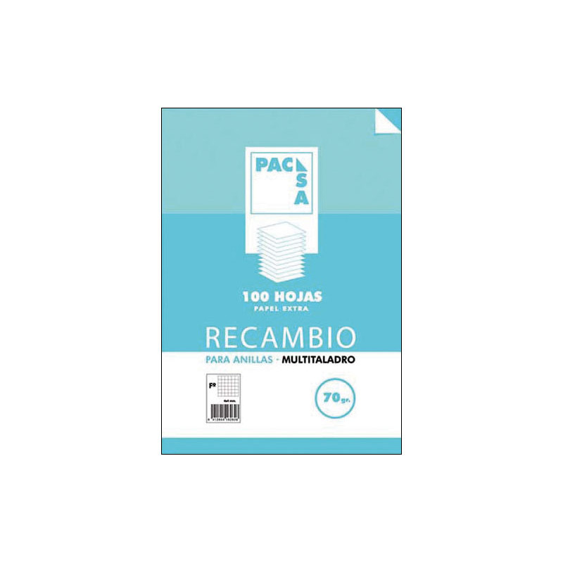 - Recambio 100 hojas - Formato A4 - Sin taladros - Rayado: Pauta 3 con margen
