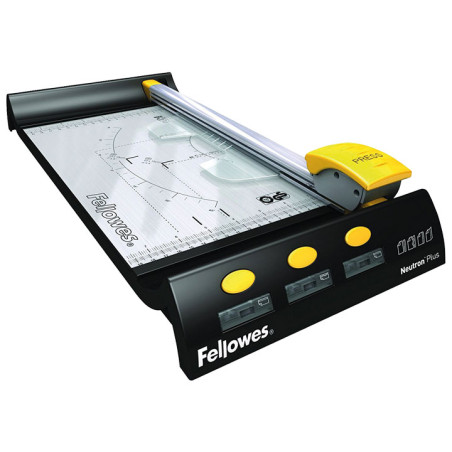 Cizalla de rodillo para uso ocasional. Con mecanismo de seguridad SafeCut™, que mantiene la cuchilla de acero en el cabezal y no emerge hasta el momento de realizar el corte. Departamento integrado en la base para guardar las cuchillas de repuesto. Barra compresora de papel transparente y ajustable que garantiza un corte más preciso. Guías de corte para diferentes tamaños DIN, fotos y radio para cortes en ángulo. Capacidad de corte: 10 hojas en formato A4 de 80gr. Dimensiones: 47x21x8cm.