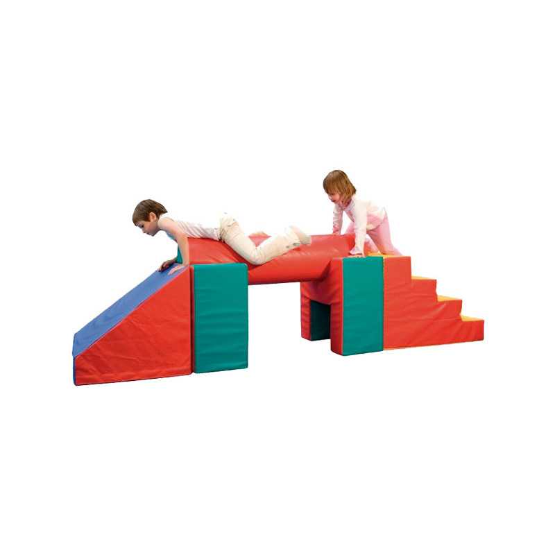 Bloques de psicomotricidad fabricados en poliuretano espumado y recubierto de material plástico muy resistente. Piezas para ser utilizadas en salas interiores con suelos lisos. Sin cremalleras ni objetos punzantes. Lavables. Los niños deberán usarlos descalzos. Ideal para desarrollar la motricidad gruesa.