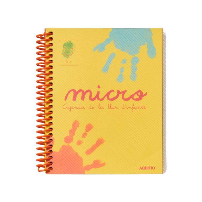 Agenda con 226 fichas día página diseñadas para una ágil comunicación, relación familia - escuela y autorización de salidas. Datos personales, las normas de mi escuela, dibujo mis manos, días de fiesta de mi escuela, calendario de curso... Tamaño 13.5 x 16.5 cm, 240 páginas de papel ecológico a 2 tintas y con uñero, sobrecubiertas en polipropileno de calidad, espiral continua de plástico. El niño podrá personalizar su agenda micro pegando su foto en la portada, dibujando sus manos, colocando la foto de su grupo así podrá reconocer su agenda y tener un bonito recuerdo de su curso. Formato especial para las mochilas de los más pequeños