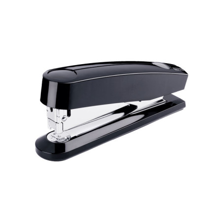 Grapadora especial con sistema patentado de función automática para grapar sin esfuerzo hasta 8 hojas, con un solo dedo y una mínima presión. Sistema antibloqueo (ABS) para evitar atascos. Artículo metálico recubierto de plástico brillante. Extensa profundidad de entrada del papel (105mm). Cargador de apertura frontal con doble guía montada sobre un resorte para evitar atascos de grapas. Sufridera rotativa que permite tres tipos de grapado: abierto o temporal, cerrado o permanente y clavado. Incluye 200 grapas de tipo 24/6 DIN Super.