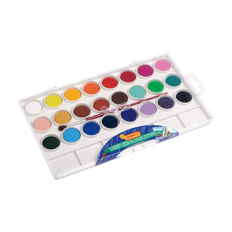 ¡Disfrutar de las Acuarelas es muy fácil! Tan sólo hay que mezclarlas con agua, aplicarlas con un pincel sobre papel o cartulina! Pastillas de 22mm en colores brillantes e intensos. Con pocillos para facilitar la mezcla de agua. Los resultados son inmejorables, sobre todo si el soporte utilizado es bastante poroso. Y es que este producto (recomendable a partir de los 8 años) es muy fluido, seca rápido, proporciona un buen rendimiento y no hace burbujas sobre el papel. Incluye pincel.