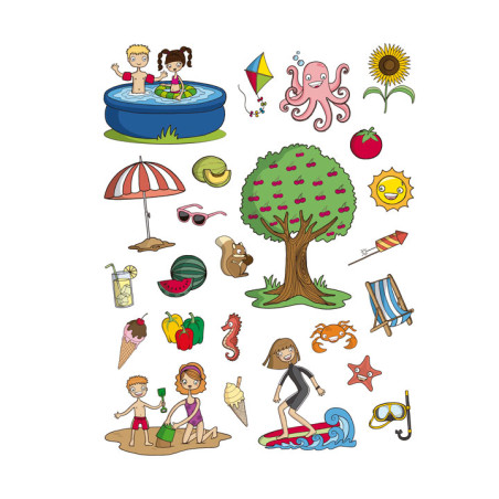 - Gomets adhesivos. - Removibles - Temática: La playa - Incluye 264 gomets.