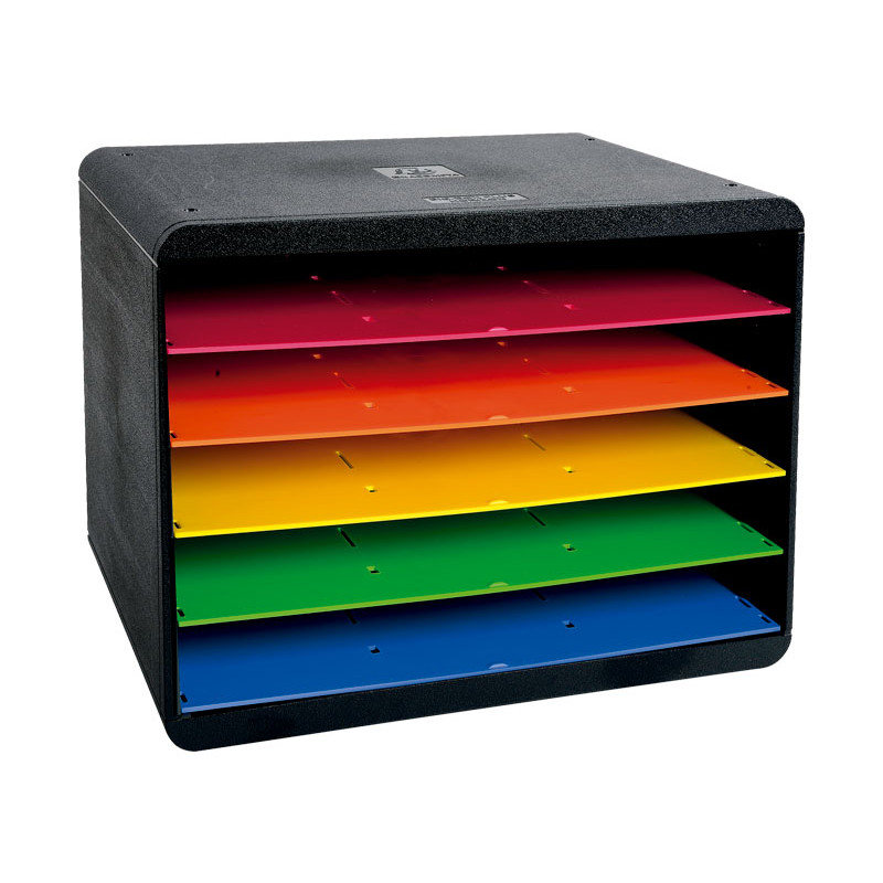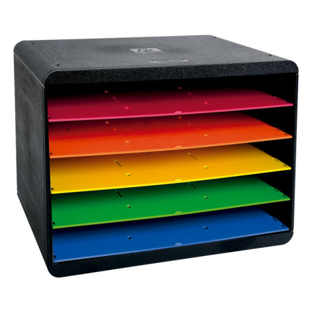 Archivadores de poliestireno. Multicolor. Campo de inscripción con la cubierta protectora transparente. Diseñado con cajones cerrados. Para archivar documentos A4 y folio. Ideal para los espacios de poca profundidad de algunos escritorios, armarios, estanterías (profundidad total de solo 27cm). Cajones abiertos que permiten la introducción directa de los documentos sin tener que abrir los cajones. Deslizamiento perfecto de los cajones, con stop de seguridad.