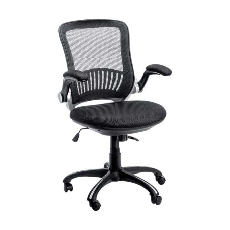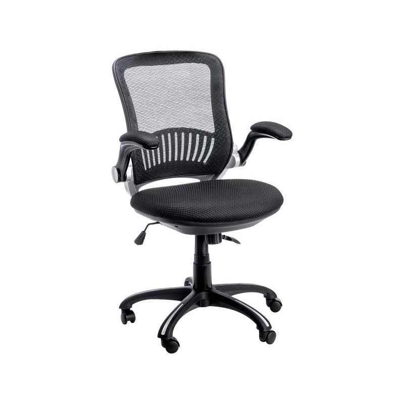 Silla operativa con mecanismo sincronizado regulable en altura mediante pistón a gas. Respaldo ergonómico de malla transpirable acrílica con regulador de tensión. Asiento acolchado y brazos retráctiles acolchados. Base de nylon reforzada con fibra de vidrio. Estructura giratoria 360º de 5 radios y 5 ruedas de doble esfera sin freno, recomendada para todo tipo de suelos (duros y moqueta).