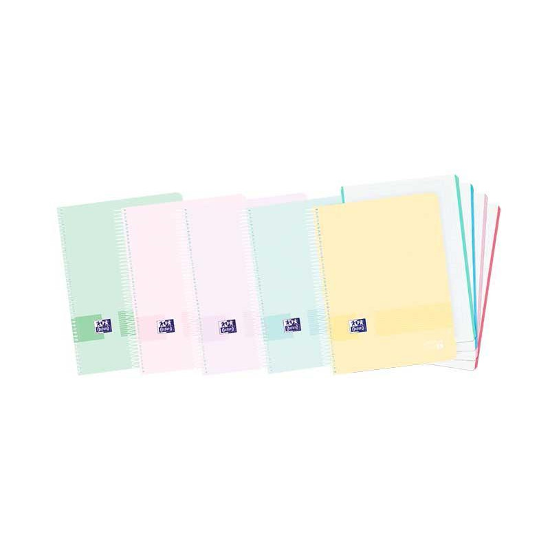 - Cuaderno tapas de plástico - Espiral simple - Microperforada con 4 taladros - Color: colores surtidos - Formato: A4 - Número de hojas: 160 hojas - Tipo de papel: papel blanco 70 g/m2 - Tipo de rayado: Liso