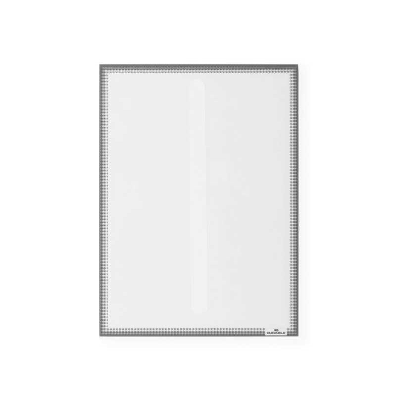 Funda informativa para paneles curvos, se fija mediante electricidad estática son adecuadas para anunciar ofertas en ventanillas de coches, escaparates y mostradores. Fijación de información en superficies de cristal lisas o curvas. El marco se pega mediante sin adhesivos. Resistente al calor y estabilidad hasta aprox. 70ºC y 2 años de resistencia ultravioleta. Fácil adherencia al vidrio sin burbujas. No deja residuos. Reutilizable. Rápido intercambio de información. Admite uso en horizontal y en vertical. Formato A4, medidas interiores: 30,3cmx21,6cm y exteriores: 32,3x23,6cm.