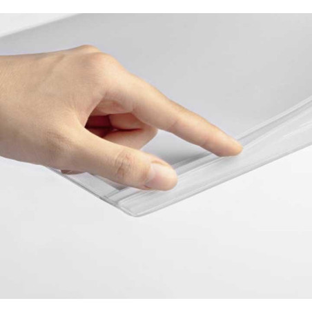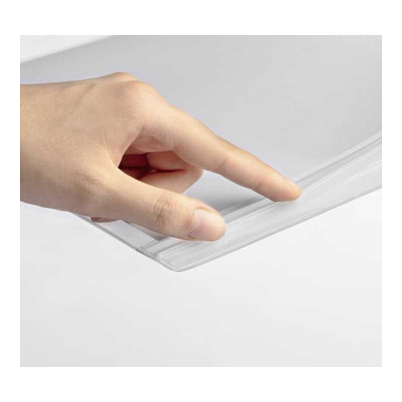 Funda informativa impermeable, ideal para mostrar información en exteriores, como centros de jardinería, saunas, piscinas, puertas y tablones de anuncios, donde acostumbra a haber salpicaduras de agua. El cierre hermético a presión protege el contenido de la funda, especialmente de la lluvia, humedad y polvo. Fijación: la funda contiene 2 tiras magnéticas de la parte posterior (fuerza adhesiva 0,95N/cm² por tira magnética). Protección IPX5 contra chorros de agua de cualquier dirección. Fabricada con plástico transparente con estabilización UV, resistente a la intemperie y a los arañazos, con tratamiento anti reflectante. Se puede usar en horizontal y en vertical. Fácil y rápido intercambio de contenido. Capacidad: 2 hojas 160 g/m2.