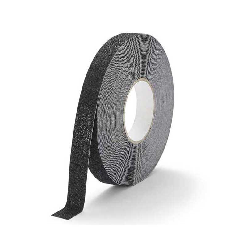 Rollo de cinta antideslizante rugosa autoadhesiva para mejorar la seguridad en zonas industriales. Para interiores y exteriores. Su capacidad antideslizante ayuda a hacer más seguros pasillos y escalones. La rugosidad aumenta la durabilidad del antideslizamiento incluso con mucha suciedad y uso intenso. Áreas de aplicación: escalones, rampas, suelos industriales y pasos en maquinaria y vehículos. En cumplimiento de ASR A1.5/1.2 "Suelos" según DIN 51130 resistencia al deslizamiento (grupo R) R13. Longitud: 15m y anchura: 25mm.