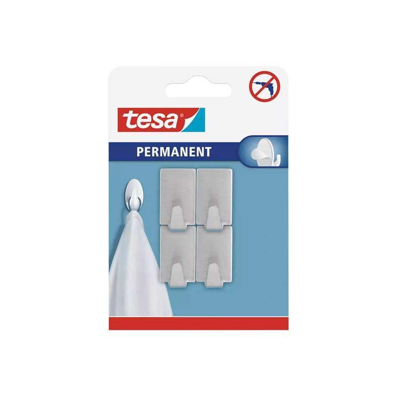 Ganchos permanentes de forma rectangular, fabricados en acero inoxidalbe. Muy útiles para colgar utensilios ligeros del baño como una toalla o un trapo de lavado que desee tener a su alcance. Equipados con un autoadhesivo trasero están diseñados para la fijación permanente en una variedad de superficies lisas como azulejos, vidrio, etc. Fácil de aplicar sin necesidad de taladrar, ni tornillos ni clavos. Ideales para la fijación permanente de objetos ligeros. Medida: 35x19x15mm.