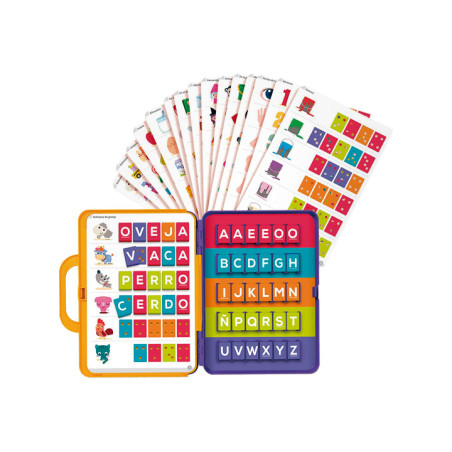 Este juguete educativo con el que tu niño aprenderá a leer, formar palabras y deletrear. ¡Ahora con nuevo contenido, nuevas ilustraciones y nuevo diseño! Con la ayuda de los ejercicios de este juego, el niño podrá practicar con las 15 láminas que contiene el juego y podrá formar y deletrear hasta un total de 90 palabras. Yo aprendo a leer es un juguete ideal para el aprendizaje de la lectura y la escritura. Sin darse cuenta aprenderá jugando y pasándolo en grande!! Gracias a su sistema autocorrectivo, sólo la ficha con la letra correcta encaja en el hueco de la palabra. Esto permitirá que el niño compruebe él sólo si está en lo cierto. El maletín convierte este juguete en un producto ideal para guardar las fichas y que no se caigan, transportarlo, guardarlo y usarlo como base de juego. Edad recomendada a partir de 5 años Juego activo para desarrollar la motricidad fina, la lecto-escritura, la orientación espacial y la adaptabilidad, así como el conocimiento del lenguaje y alfabeto.