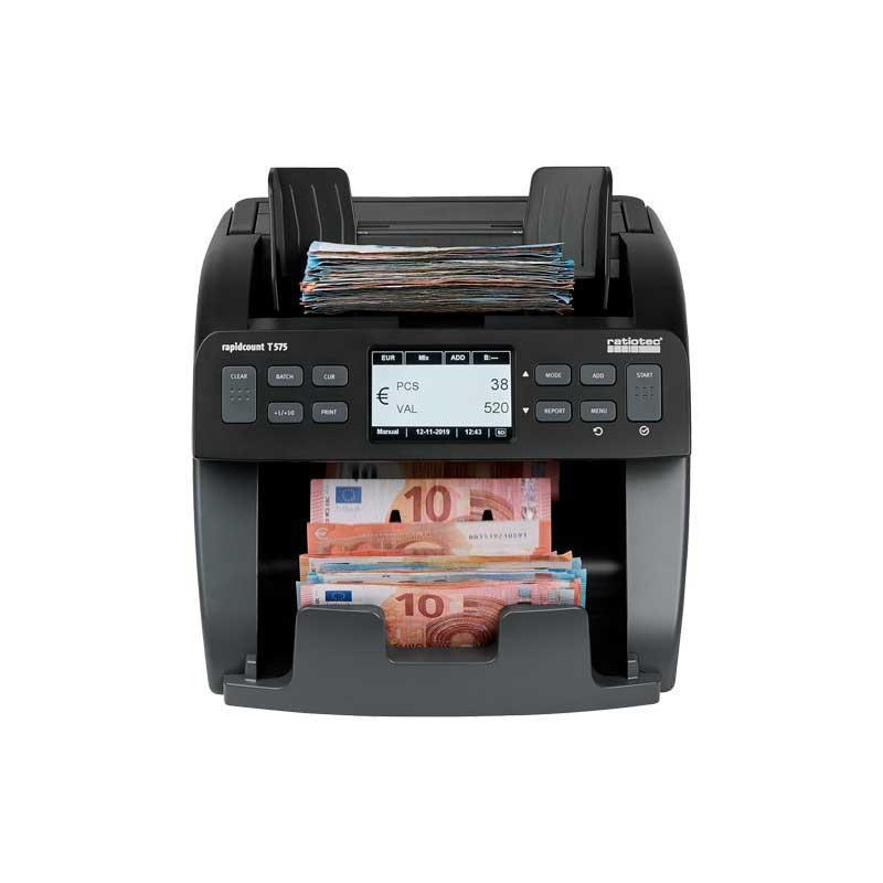 Contadora automática de billetes, para volúmenes medianos de conteo. Contadora de unidades y de valor con minucioso control de autenticidad cuenta de manera fiable billetes clasificados y mezclados. Indicación del importe total y de la cantidad de cada tipo de billete en una moderna pantalla. Detección UV I IR I MG I MT I SD | CIS. Con función de agrupación, para el recuento tras una cantidad de billetes programada. Función de impresión para una impresión clara de los resultados del recuento. Puede contar hasta 1.000 billetes por minuto, incluso los desgastados o sucios. Potente sistema de entrada para pilas de billetes. Pantalla de LCD de alta calidad. Cómoda limpieza y fácil extracción de billetes atascados o enganchados. Inicio y parada automáticos. Incluye cable de red y manual de instrucciones. Medidas: 26,3x26,8x25,5cm.