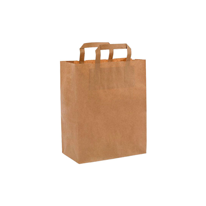 - Pack de 50 bolsas - Fabricadas en papel kraft - Gramaje de 100 gr/m². - De primera calidad - Bolsas con asa - Ideales para el pequeño negocio - Medida: 18 x 8 x 21 cm.